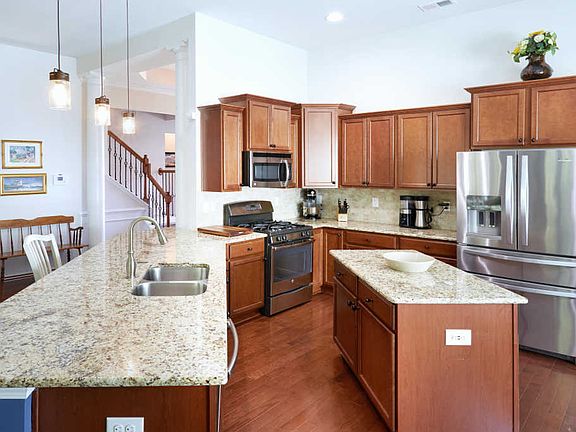 This spacious home with open floor plan features soaring ceilings and hardwood floors on the first floor. As you enter the grand foyer, you can't help but notice the floor-to-ceiling windows and doors that frame the view of the beautiful trees in the wooded area behind the home. Enjoy spending time in the living area with gas-log fireplace and Dolby surround sound for movie nights. The eat-in kitchen features granite counter tops, large peninsula with abundant seating, separate island, and pantry. There's also a separate dining area for entertaining friends and family. The spacious master bedroom with its en suite bath and large walk-in closet are also located on the first floor and enjoys a view of the woods. There are two additional bedrooms and full bath at the front of the ... home, plus two more large bedrooms and full bath on the second floor. The large screened porch with vaulted ceiling is the perfect place to unwind at the end of the day and also features a tie-in to the Dolby sound system. New, 6-ft wood fencing has been added across the back of the yard for even more privacy. Tons of storage! HVAC is a two-zoned system with thermostats up and down.Owners have been transferred, and this gorgeous home is priced to sell!