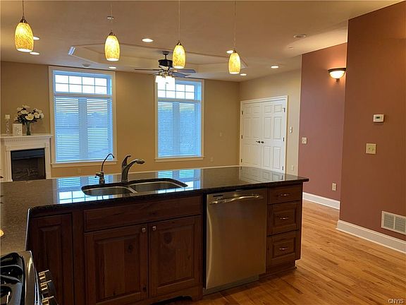 Enjoy maintenance free living in this stunning 2 bedroom, 2 full bath condominium. This home offers hardwood & tile flooring throughout the 1365 square feet of living space, a gorgeous kitchen with custom cherry cabinets, granite countertops & stainless steel appliances, a gas fireplace in the large living room, your own laundry/utility room that includes the washer, dryer & trash compactor. You can enter the building from 3 separate secure doors and take the elevator to your floor, or use its own exclusive keyed freight elevator from the parking garage, that only comes into this unit. There are 2 included parking spaces in the underground parking garage, plus an additional storage area. The Cayuga St. Condominiums are surrounded by amazing restaurants & businesses, and they are across the street from Lock 3 on the Oswego River, Canal Landing & Towpath Trail. Route 481 is at your front door to easily get to Syracuse or Oswego...this location cannot be beat!