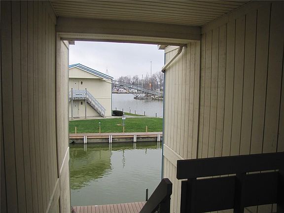 Totally updated condominium in Harbourside. Everything is new! Tile flooring throughout, kitchen cabinets, bathroom vanities, granite counter tops in bath and kitchen, new stainless steel appliances and freshly painted. Very desirable location at the end of the channel facing the harbor in Russells Point and the historic restored bridge from Sandy Beach Amusement Park. Truly turn key. Furniture stays. Electric boat lift included.
