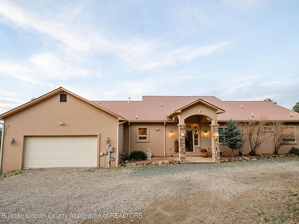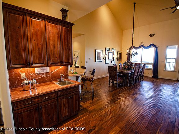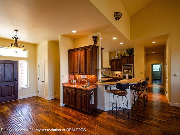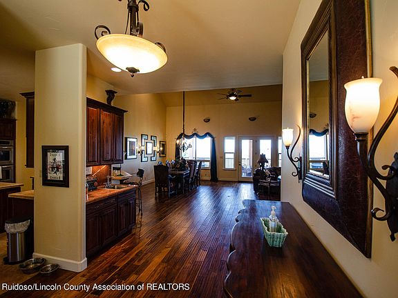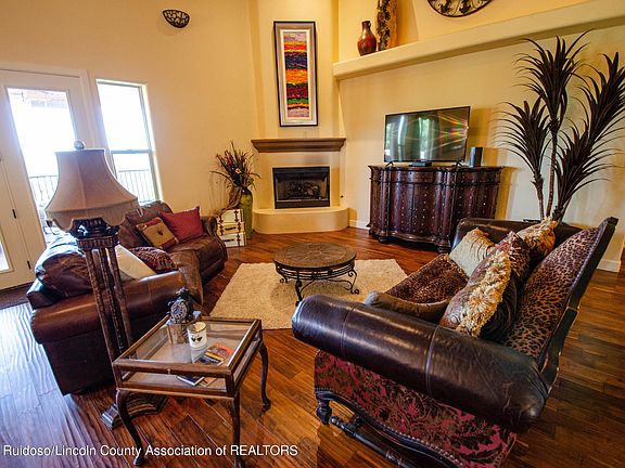 Unwind at this secluded retreat nestled by the beautiful nature of Ruidoso. This home has been meticulously maintained. Spacious and open with teak wood flooring. High-end furnishings. Kitchen has many custom features, plenty of cabinetry, a six burner Wolf gas range, a big center island to gather around with lots of extra room. 3 out of the 4 bedrooms have deck access to look out to the peaceful views of Ruidoso. Sit on the plush carpet and cozy up to a crackling fire in the main bedroom. Main bedroom has 2 separate closet spaces, separate sink areas, open bathroom with unique custom tiled private shower, and a soak tub. Expansive deck ideal for outdoor entertaining with breathtaking views, hot tub to soak under the stars, outdoor kitchen and, bar. Make this your very own mountain oasis!