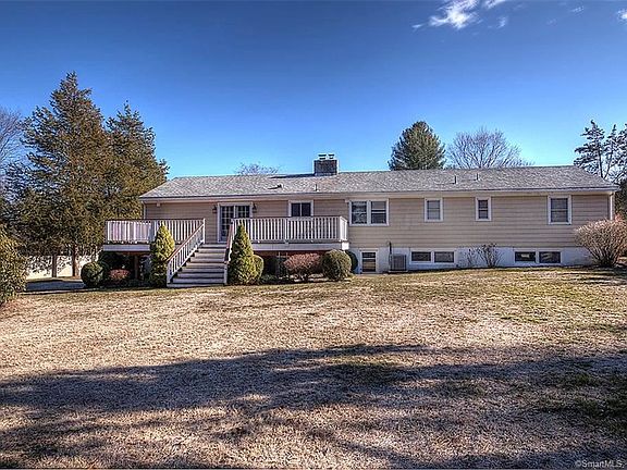 Sprawling 4 bedroom, 3 full bathroom & 2822 sq ft ranch-style home (which includes 600 sq ft in lower level w/walk-out) in beautiful central Orange neighborhood. This home sits elegantly on 0.98 acres and features an open and spacious floor plan. To the right of the tiled front foyer, there is a large living room w/ a fireplace and large bay window for lots of natural light. The space flows effortlessly into a large family room / dining area and open kitchen with a vaulted ceiling. The updated kitchen has granite counters, distinctive French country style cabinetry, a breakfast bar, and a large center island with a gas range. The kitchen leads outdoors through French doors to a 500 sq ft deck that overlooks a large, open and private backyard. To the left of tiled front foyer, are 3 bedrooms (which share a remodeled bathroom) and the master bedroom (which has its own updated bathroom). With the exception of the bathrooms, all flooring on the main living level is hardwood. The home has 2 garages (each with a new door and opener), public water, oil hot air heat furnace (2000), new oil tank (2019), new central AC compressor (2019), and an electric hot water heater. The roof is approximately 14 years old. Fantastic location for RT 34 & RT 15 (both within 1 mile), and 10 minutes Boston Post Rd and Trader Joe's / Whole Foods. Five minutes to Racebrook School and the Amity Middle School (Orange). Ideal YALE commuting location. (Town record for this address notes 3 BR w 2.1 BA.)