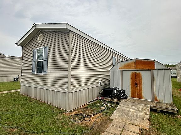 Welcome to your cozy retreat! This custom-built 16x80 Sunshine Mobile Home offers comfort, convenience, and a touch of modern elegance. Nestled in a tranquil community, this home boasts a spacious open floor plan, ideal for entertaining friends or simply unwinding after a long day. Step inside to discover a bright and inviting living space, seamlessly blending the living room, dining area, and kitchen into one cohesive area. The open layout creates a welcoming atmosphere, perfect for gatherings and everyday living. The heart of the home, the kitchen, features modern appliances, ample cabinet space, and a convenient breakfast bar, making meal preparation a breeze. Whether you're cooking for yourself or hosting a dinner party, this kitchen has everything you need. Retreat to the spacious master bedroom, complete with both a double closet and a spacious walk-in closet, providing plenty of storage space for your wardrobe and belongings. Two additional bedrooms offer versatility, perfect for guests, roommates, or a home office. Outside, you'll find a covered porch, where you can relax and enjoy the fresh air year-round. Plus, a storage shed provides additional space for your outdoor gear, tools, or seasonal items. Conveniently located, this mobile home is great for college students, offering proximity to campuses, shopping centers, restaurants, and entertainment options. With easy access to public transportation and major highways, commuting is a breeze. Don't miss out on the opportunity to make this charming Sunshine Mobile Home your own. Schedule a viewing today and experience the comfort and convenience it has to offer!