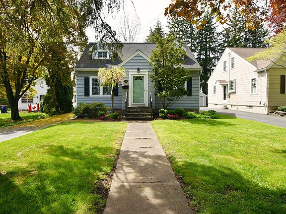 Welcome to your opportunity for simple living in this charming and meticulously maintained Cape Cod style home with Penfield schools. The first floor includes a foyer, a great room, an updated kitchen (granite & Stainless Steel), a dining room, a bedroom and full bath. Included appliances are stove, refrigerator, dishwasher and microwave. Greenlight provides super fast internet. The second floor has two bedrooms and tons of storage. The interior of the home has been freshly painted. The lower level has a large professionally finished area with new carpet, recessed lighting, glass block windows, large built-in cabinets and connections for a generator. This amazing space is not included in the home’s square footage. The huge, screened and covered porch leads to a fully fenced (new) yard with new landscaping. Many recent updates.Don't miss the chance to explore this captivating home at the open house on Saturday, May 11th, from 2:30 PM to 4:00 PM. Delayed negotiations with offers due by Monday, May 13th at 4 pm, seize the opportunity to make this charming property your own before it's too late!