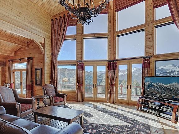 Incredible Washington Cedar luxury custom flat log home that offers up the most dynamic views of Breckenridge Ski area and surrounding mountain tops. This magnificent home is accented by Brazilian Rosewood floors and decks,hand crafted wrought iron railings,Granite counters,5 massive rock fireplaces,2 master suites,one on the main floor, full custom bar,2 laundry rooms and an abundance of space for the entire family to relax and enjoy the beautiful views and amazing Sunsets. Truly Beautiful.