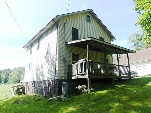 Lovely farmhouse with beautiful pocket doors. Private location with 59 acres to roam. 3 bedroom home with living room, open dining room and kitchen. Water source is spring water with a 1,000 gallon concrete holding tank. Energy efficient furnace, gas hot water tank and central air make this an easy choice....unlimited FREE gas.