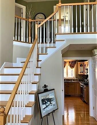 Spectacular "like new" 4-bedroom colonial. Original owner has meticulously maintained this warm and tastefully upgraded home. Grand 2-story entrance, h/w throughout 1st floor, eat-in kitchen, granite, s/s appliances. Vaulted family room w/ ceiling fan, recessed lights, gas fireplace surrounded by beautiful mantel and raised granite hearth. Custom 3" wood plantation shutters. First floor laundry. Master bedroom with walk-in-closet, master bath: double vanity, shower and soaking whirlpool tub. 2nd staircase entrance in back of house leading up to 4th bedroom which also makes for an office or master suite. Landscaped yard with irrigation system. Cobblestone driveway and walkway. Large deck with brick patio. This home is truly move-in ready.