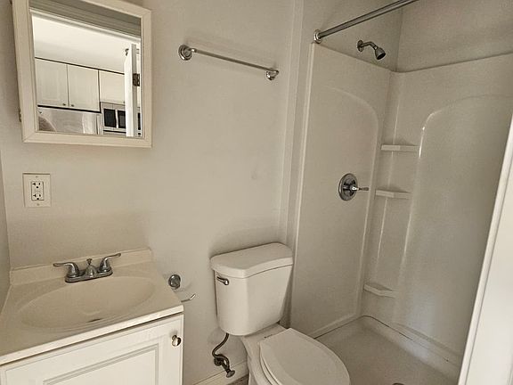 This modern unit features a kitchenette with granite countertops & stainless steel appliances, laminate wood floors, and a stand-up shower.