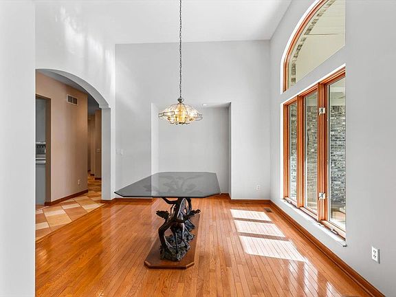 Stately & elegant, custom-built brick atrium ranch on private wooded lot located in the exclusive Crescent Bluffs Subdivision. This atrium ranch sits on 3+ acres and offers: Grand entry with fireplace, formal dining room, large/open gourmet kitchen with butler's pantry, lighted display cabinets & generous counter space -- ideal for hosting large groups! A beautiful hearth/great groom with large picture windows overlooks a private backyard oasis, media bar in hearth room can be converted to wet bar -- plumbed. Primary Suite w/coffered ceiling, 2 walk-in closets, elegant bath featuring 2 separate sinks/vanities, private WC, jetted tub & separate shower. Main floor also offers 2 additional beds, laundry room & screened in porch off of kitchen. Finished walk-out LL offers amazing additional living space: recreation area, bonus room (great home theatre or 4th bedroom), kitchen, ample storage, workshop/ storage room. Central vac, 2 electrical panels, water softener, 3 car garage! Additional Rooms: Sun Room