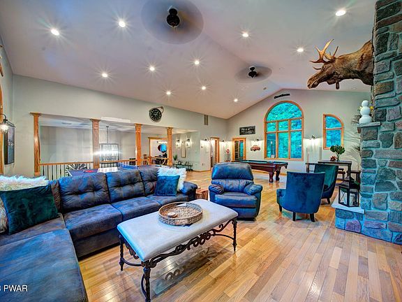 Calling Short Term Rental Investors! Luxurious traditional estate with lake rights to Lake Wallenpaupack, no community association, and close to Interstate 84! With close proximity to both Lake Wallenpaupack and Hawley, this upscale home sits on over 2.5 acres and features a 3 car garage, huge unfinished basement area for future expansion, grassy yard, hot tub/spa room, hardwood floors, floor to ceiling stone fireplace, multiple entertaining areas, new septic approved for 5 bedrooms, and so much more. Ask for the virtual 360 tour! Property is in Palmyra Township which allows Airbnb/Short Term Rentals by permit. No HOA (Dirk is a township road), Beds Description: 2+BED 2nd, Beds Description: 1Bed1st, Baths: 1 Bath Level 1, Baths: 2 Bath Lev 2, Eating Area: Dining Area, Eating Area: Modern KT