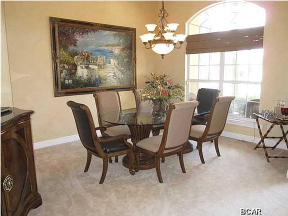 This elegant, executive home is located in the exclusive Dragon's Ridge section of Bay Point and overlooks the Nicklaus Golf course. It features 12' ceilings with crown moldings, new granite in the kitchen and bathrooms, stainless appliances, a large master bath with separate shower and whirlpool bath,built in bookcases, an interior laundry room, and a gas log fireplace. There is a covered, heated pool which was resurfaced in 2011. Dragon Circle has it's own park area with private tennis courts. All located in Bay Point, a gated community with 2 world class golf courses, clay tennis courts, a bank and post office, restaurants, and a full service marina just minutes from the open Gulf of Mexico.
