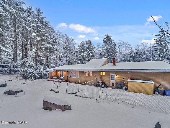 STREAMS, WOODS, + PRIVACY ON 9.16 ACRES! Zoned ''Mixed Use/Village'', this 2 family home has a total of 5 bedrms and 4.5 baths. Sitting on 2.14 acres on both sides of the road, plus additional 7.02 acres, and surrounded by large parcels, this homestead offers a 2 rushing streams (always heard outside), lots of woods, and a very spacious home. Full living spaces on each floor, hardwd floors upstairs, large windows for natural light, primary suite with french doors to the deck, several sheds, 2 car garage plus a separate 2 car garage, several forms of heat, central air upstairs, and the perfect location in the heart of Canadensis. Township allows short term rentals. Agents, see private remarks.