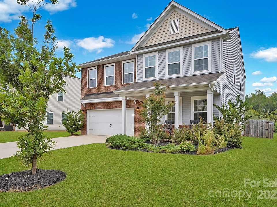 Well-maintained & move-in ready! Great floor plan conveniently located to downtown Mooresville & community parks. BRAND NEW LVP floors downstairs! The dining room has a barn door opening to a closet with bar. The open floor plan area with living room with gas log fireplace, a breakfast area with sliding doors to the patio, and a kitchen. The well-equipped kitchen includes a pantry, an island, stainless gas stove, stainless dishwasher, built-in microwave, stainless refrigerator, and a built-in sprayer in the faucet. Conveniences on the main level include a half bath and coat closets by both the foyer and the door to the garage. Upstairs you'll find a spacious primary suite, 3 bedrooms, a loft, and a laundry room with washer & dryer. All appliances convey! Security system with cameras. Large fenced backyard with patio, playset and storage shed. Backs to common area with picnic shelter & walking trail. Award-winning MGSD schools. Sellers offering $6000 concession to buy down your rate!
