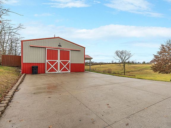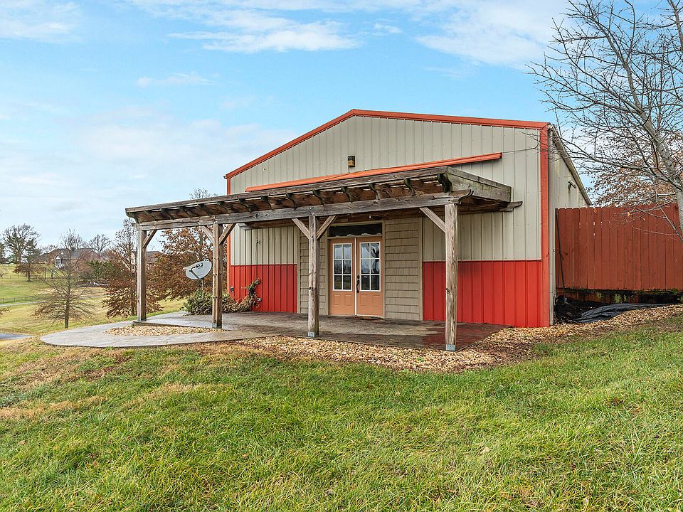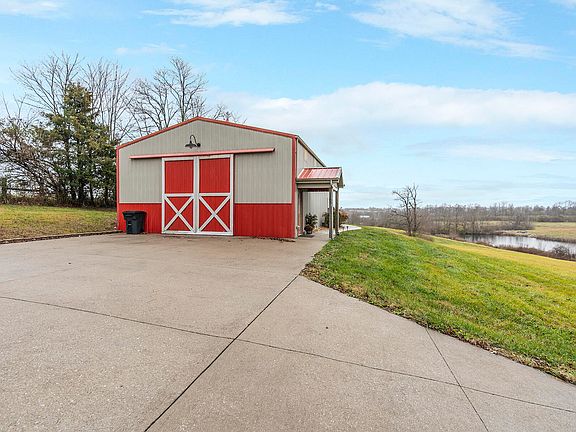 The best of both worlds...This modern barndominium is perfectly positioned on a 10-acre mini farm in popular Kings Gate Subdivision only moments from Richmond & EKU. This unbelievable haven boasts gently rolling land perfect for garden or horses, a pond stocked with fish (partial pond included in land w/full use) + winding trails for exploring and adventure! The well-designed layout gives way to a massive great room updated luxury vinyl flooring, fresh paint, a spacious living area w/French doors that swing wide to a relaxing stamped patio w/pergola and some of the best sunsets in the area. The adjacent kitchen boasts and adjacent kitchen w/handsome cabinetry, custom range hood, dining space for entertaining. Travel upstairs to the loft space large enough for 2-4 beds, two closets + built in wall cubbies. Storage space for all of your extras in the unfinished area/workshop + two storage lofts. Entertain friends in the bonus space, currently set up for a gun range, but would make for a great rec room, theater or office space. Attached storage building . Barn doors open to allow space for rec vehicles, tractor, mowers....
