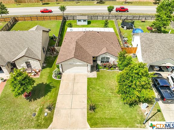 Centrally located between Austin and Temple/Belton is this GEM and it's PRICED TO SELL! At $259,900 you will be hard pressed to find a house with this much value(BONUS- NEW ROOF 2022)! Curb appeal can only be described as charming PLUS a brand new shed in the backyard with a wood privacy fence. Inside, is a living area open to the kitchen - perfect for entertaining or watching the little ones while your in the kitchen. Included in the HOA is access to the community pool, covered splash pad and walking/biking trails. Easy access to i35, so regardless of working in the Austin area, Belton/Temple or even Fort Hood/ Fort Cavazos- your commute is easy! Custom paint is throughout the house but seller is negotiable, so please reach out for additional details and to schedule your personal viewing!