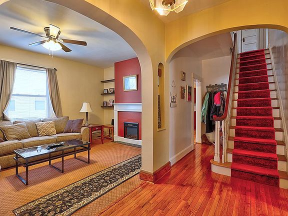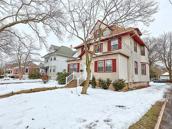 This beautiful Center Hall Colonial features Large rooms with high ceilings. Elegant wood trim and some crown molding. Open views of the park across the street. Plenty of natural light. Spacious back yard with a tire swing and Fire pit. Set on one of the nicest streets in town. Gorgeous tree lined street with a central Island. The first floor has an Entry Way Foyer, Large Living room with an Electric Fireplace, Large Dining room, Eat in Kitchen, Family Room, Sunpourch, A half bath, Screened in Porch and a Deck attached. Plenty of space for entertaining. The second floor has a full Bath, 4 large Bedrooms With an additional room/Walkin Closet. Full view of the neighborhood and park across the street. The 3rd floor has 2 additional rooms with closets and a full Bathroom. Outstanding views of the of the seronding neighborhood, Detached 2 car Garage with 3 additional parking spaces, With a long Driveway. The Basement spans over 660 square feet approximately. Has a Washer and Dry. Stairs leading outside and a 1/4 Bathroom