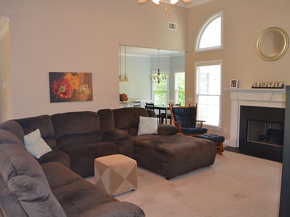 Wow! Move-in condition home with lovely fenced yard. Master suite and 2 additional bedrooms are on the main floor + 4th bedroom or office above. High ceilings in great room, hardwoods in dining room and eat-in kitchen. The master has trey ceilings & the bath has a spa tub, separate shower, double vanity, and giant walk-in closet. The kitchen has lighter colored granite countertops and is fully equipped. The back yard has trees, a garden area, and patio. 2 guest rooms + a hall bath to the right of entry. 2 car garage + storage in the attic. Newer HVAC. You'll love the neighborhood, the swim/tennis & the location. Much of the home has been freshly painted.