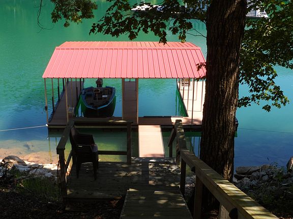 Own the home with the BEST parking at Flat Hollow for your boat, trailers, and vehicles. Massive concrete pad(parking for 4-5 vehicles) in front of home and dual slip boat dock will make this a place for ALL your friends and family. Less than 50 stairs to the water, big picture windows to enjoy the lake, close to the Marina for gas and food- this home has it all. Would make a great rental or family retreat. Everything is done- bring your swim suit and tooth brush.