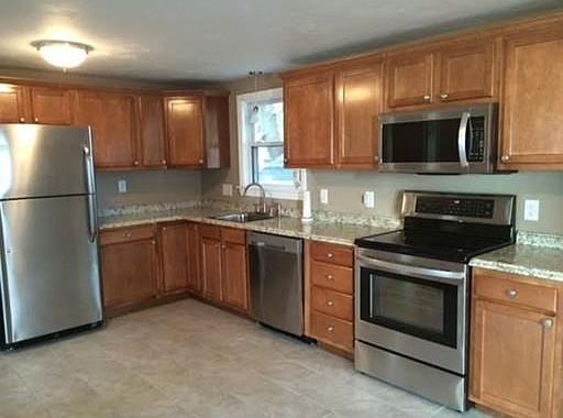 Beautifully renovated spacious Tri-Level is ready for you! Features include a gorgeous eat-in kitchen with stunning new cabinets w/ crown molding, dynamite tile floor, brand new Stainless Steel Refrigerator, Stove, Dishwasher and Microwave! Enjoy the awesome 3-season porch. The living room has gleaming hardwood floors and a wood burning brick fireplace! Second floor offers 3 bedrooms w/closets and 2 linen closets. The NEW fully Tiled bathroom is gorgeous! Enjoy the lower level Family Room! Separate laundry room for your washer and dryer. Lge. basement with a 3 zone oil heating system or the option is there for you to hook up to natural gas in the future! Also has all NEW electric, plumbing, paint, doors, landscaping, light fixtures and much more! You will love the large private fenced yard, large Deck and a Shed! Park your car in the GARAGE! Lots of space, modern open concept floor plan and all sparkling new. Just move right in!