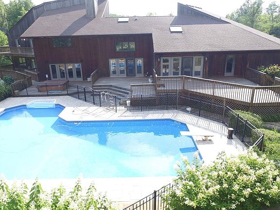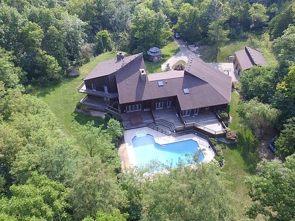 Opportunity to own a piece of paradise! Magnificent, large, custom designed contemporary home on 11+ acres affords privacy with conveniences close by. Large great room w/stone fireplace opens to rec/billiard room w/wet bar & access to deck area, huge inground pool w/new liner, hot tub & koi pond. 2 Loft areas available for den, office etc. Fantastic kitchen has loads of granite counterspace, lovely cabinetry, stainless appliance package, dining bar, custom designed tile floor, huge w/in pantry & opens to large dining room. Master bedroom w/stone fireplace & spa-like ensuite bath. 1st Floor has large guest suite w/bath & loft area w/ spiral stair, bonus room, huge laundry room. 2nd Level w/3 spacious bedrooms all w/ balcony access & full bath. Lower level w/rec room, theater room, bedroom, full bath, kitchenette, storage & 3 oversize garages. Detached 3-car garage w/12 inch poured foundation. Home foundation walls are 10 inch concrete & 2X6 studding & extra insulation. Geothermal HVAC