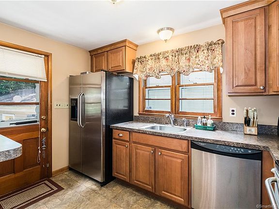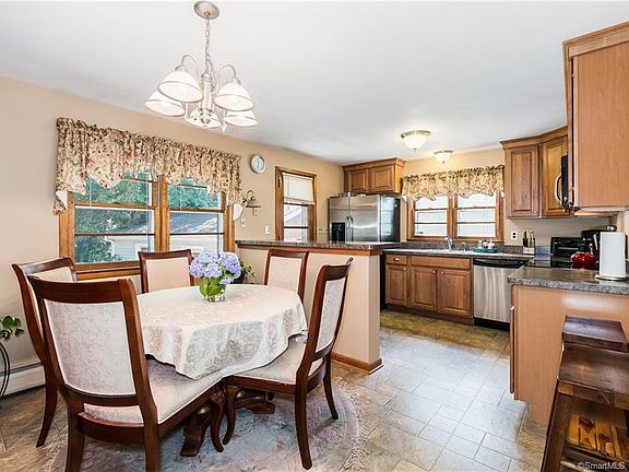 Easy one-level living in this updated two-bedroom two-bath Ranch, located on a quiet street in the desirable Lake Forest area. Situated on a private level lot on 1/3 acre. This home has a nice open floor plan. The eat-in kitchen with stainless steel appliances and breakfast bar opens to a separate dining area. Large living room with hardwood floors. Master bedroom with full bath, whirlpool tub, walk-in closet, hardwood floors. Additional bedroom with hardwood floors, and hall bath with tile flooring. Full unfinished basement with high ceilings could be finished for additional space. There is a large deck in the rear yard perfect for entertaining, surrounded by mature plantings. Detached garage with automatic opener. Security system. Walking distance to nearby Lake Forest with swimming and boating facilities, optional membership. Convenient location with easy access to Merritt Parkway, Rts. 8/25. Close to shopping, mall, transportation, MetroNorth train.