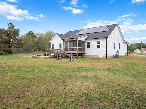 MUST SEE! This beautiful ranch home sits on 2+ acres. Sellers screened the patio, added deck, and cleared lot creating a huge outdoor oasis. They added solar panels and all windows have high quality energy saving tint. This split bedroom plan has a large living room with built in bookshelves and is open to the breakfast room and kitchen. The kitchen features a breakfast bar, recessed lighting and stainless appliances. The primary suite has a double tray ceiling, double vanities and WICs. No HOA. Welcome Home!