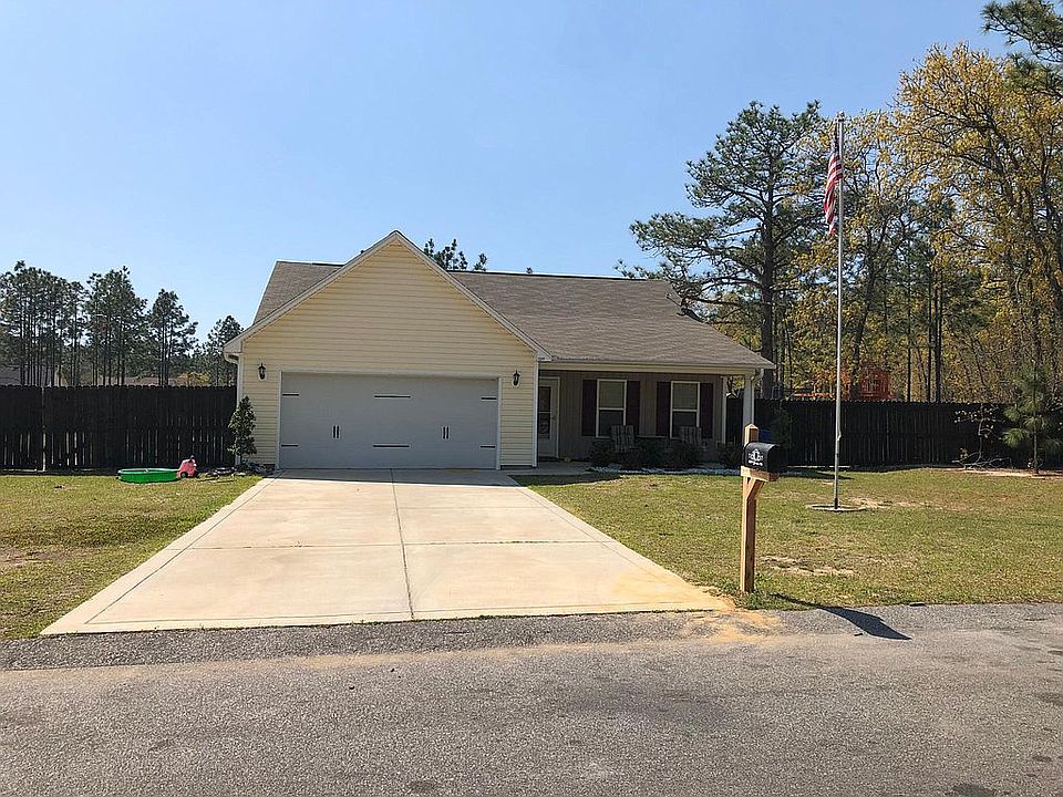 House will be available Mid August. Beautiful 3br 2ba house located on a HUGE corner fenced in lot. Kitchen includes upgraded stainless steel appliances, bar, and eat in kitchen area. The master bedroom includes a huge walk in closet, huge storage closet, and master bathroom with double vanity, garden tub, and walk in shower. Laundry is located in the hall along with another huge coat closet. Spare bathroom is located conveniently next to the other two bedrooms. There is another storage closet at the end of the hall next to the rooms as well. Playset will be staying to be used by the tenants as well as a storage shed in the backyard. Pets negotiable. 25 mins to Chicken and Reilly Gate House is zoned for Sandy Grove Elementary, Sandy Grove Middle School, and Hoke High School Washer and dryer not included! Renter pays for trash, electric, water, and lawn services.