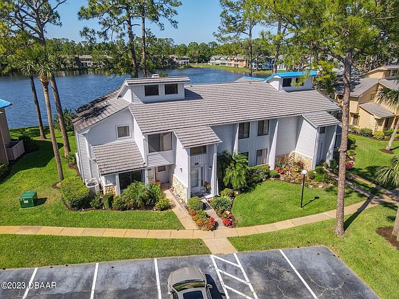Get started in this beautiful 2/2 condo that is ready to move in and go to work or just relax. Many services covered in COA fees. Parking directly in front of door with easy ramp access. Enter into the large, peaceful screened balcony facing N overlooking Lake Sandpiper from the kitchen, living room, or main bedroom. Sip coffee and watch the ducks play. Staircase up to main living area includes a brand new stair lift to lift you up the stairs if needed. Recent kitchen remodel, newer appliances with smart convection oven, clean look with new washer/dryer. Beautiful cathedral ceilings. Golf Course and Country Club available. Very close to I-4, I-95, Daytona Int'l Speedway, and Int'l Airport