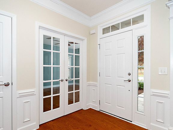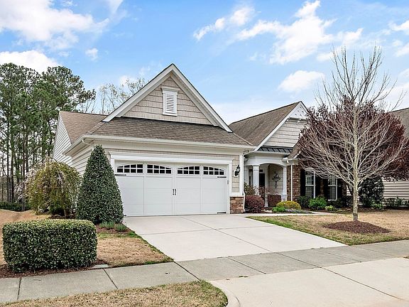 Cary's Premiere 55+ Active Adult Community. Chestnut Garden floor plan with large 3-Season room. Beautiful private views of wooded area from all the rear facing windows. This home boasts three bedrooms, study/den and formal Dining Room. Large kitchen with walk-in pantry, center island, gas cooktop vented to exterior, and GE SS appliances. Shelf Genie custom pull out shelves in all the lower cabinets allows for easy access. Delta Touch Technology kitchen faucet adds to the accessible features of the kitchen area. Open family room with fireplace gas logs and a view overlooking wooded natural area. Upgraded ceiling fans and lighting throughout. Large Primary bedroom has area for Coffee or Wine Bar with additional cabinet storage. Primary Spa bathroom has large walk-in shower with upgraded handheld showerhead and jacuzzi tub. Walk-in closet with lots of shelving. Custom window treatments open from both top and bottom for added privacy. Original back porch screens were replaced with sliding windows to allow for more year-round use. Imagine avoiding the Yellow Pollen from covering all your outdoor furniture. There is a sliding screen door for use when you want to let a warm spring breeze blow through. The outside patio has gas line to make grilling easier. The exterior landscaping has been upgraded and many flowering plants installed. There is a drip irrigation system with timer for easier watering of the plantings. There are no homes across the street adding to the overall feel of privacy. This home has several features that make it more accessible. The level sidewalk and one step front door make for ease of access. Several doors are wide enough for wheelchair. The primary bath has extra floor space by toilet and wider door. Don't forget to check out Bradford Hall. A 35,000 square foot clubhouse, state-of-the-art fitness center, tennis, PICKLEBALL COURTS, bocce courts, indoor and outdoor pools, pottery and dance studios, and over 120 clubs, Come view this unique home before it's gone!!