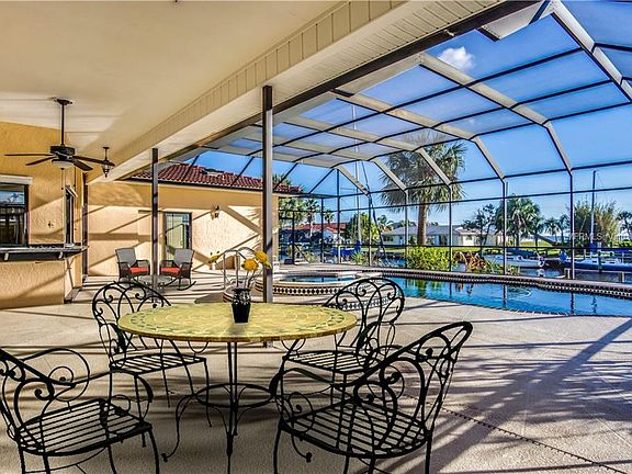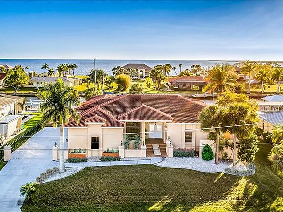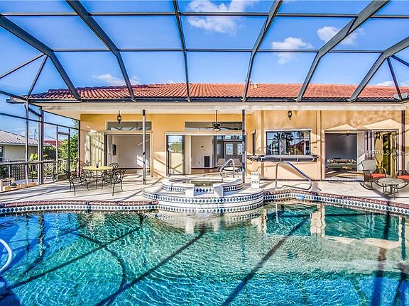 LOCATION LOCATION LOCATION! Sailboat access canal home with a 2 minute ride to harbor plus two harbor views from the amazing 1754 sq ft lanai that showcases a beautiful Pebble Tec, self-cleaning, heated pool & spa, has a 28x10 section under trusses, 4 sets of sliders, and views of breathtaking sunsets! 101' of waterfront recently dredged on a 120' wide canal with two 20'x10' docks. Inside is the oversized family room with 11' ceilings, wood burning fireplace, & wet bar, open to the kitchen making it the perfect entertainment space. The Master Suite rich in sunlight has transom windows over its triple slider to the lanai, walk in closet, walk in Roman shower, jetted tub, & water closet. The split floor plan is unique w/ two guest bedrooms having the feeling of seclusion tucked in the rear of the home. Kitchen has granite countertops, two oversized pantries, large island w/ abundant seating area, built-in desk, & two pass-thru windows to the lanai. In addition to Hurricane shutters, & impact resistant windows, home features a 'safe zone' inclusive of the Master suite & 4th bedroom. Oversized driveway has room for your RV. Located in desired Port Charlotte Beach Complex, you can WALK to the beach & park! Park boasts a 465' pier, boat & kayak ramps, Basketball, tennis, volleyball, bocce, horseshoes,picnic shelters, grills, playground, pool, & a 6,000 sq ft rental facility. A year's home warranty is included.