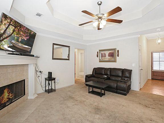 100% Financing Available! 4 Bedrooms! Conveniently Located! Fenced Back Yard! Lots of Space! This 4 bedroom, 2 bathroom home features several extras that elevate this good house to an excellent home. A covered porch provides entry to the foyer which leads straight into the family room. The family room boasts a double trey ceiling with fan, corner fire place w/mantel and direct access to the patio and back yard. The family room is open to the breakfast area overlooking the back yard and galley style kitchen with a small breakfast bar. The master suite is off the kitchen and breakfast area and is also highlighted by a double trey ceiling, private access to the patio, double vanities, jetted tub, separate shower and walk-in closet. The 3 remaining bedrooms and guest accessible bath are on the other side of the family room. A decent size laundry room with storage and counter space is between the kitchen and 2 car garage. Call today for your private tour.