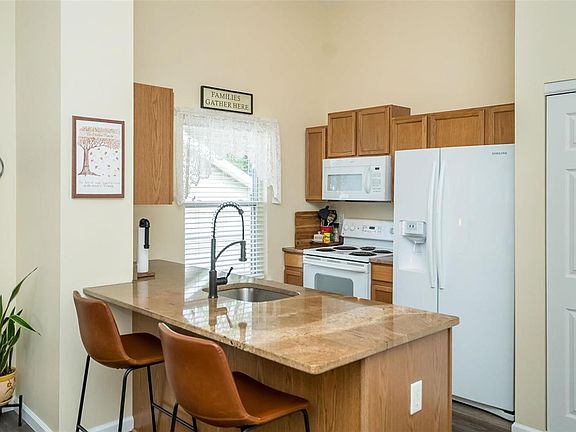 - Dining/Living Room Combo, Breakfast Bar, Eat-in Kitchen, Granite Counters, Open Floorplan, Vaulted Ceiling(s)