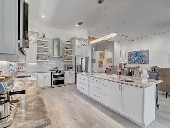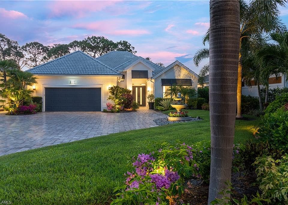 Located on the exclusive waterfront side of Audubon Country Club, this designer's Naples dream remodel is sure to impress even your most discerning buyers. New (2020) pool, cage, and outdoor flooring. With 3 spacious bedrooms and 3 gorgeous bathrooms, magazine-quality kitchen, custom enclosed lap pool and spa, and views overlooking the 16th hole of Audubon's championship golf course, you can move right in and start living the luxurious Naples lifestyle. The enormous custom paved front driveway offers plenty of space for you to expand the home, or just enjoy the breathtaking space as is. Audubon offers gated/guarded entry, a 18 hole Troon championship golf course, 2 pickleball and 7 tennis courts, enormous resort pool with modern bar and restaurant, bayside boardwalk with kayaks for gulf access, and a state of the art fitness center. With convenient access to the beach, shopping and world class dining just minutes away, you can have it all.