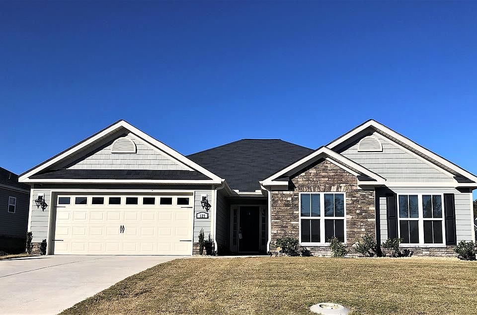 Available for mid-December occupancy! Brand new single story 4 br/2bath home. Covered front porch. Entry foyer opens to living room with spacious living room with wood flooring, ceiling fan, fireplace. Open floor plan, eat-in kitchen with granite countertops, breakfast bar, stained cabinets, pantry and stainless steel appliances. Dining area off kitchen with rear door. Private owners suite with trey ceiling and ceiling fan fan, his and her walk in closets in adjacent en suite master bath with double sink vanity, separate tub and shower. Other bedrooms have large closets and additional full bathroom. New home offers lower energy bills, saving an estimated $300- 4400 annually. Laundry room with cupboard storage space. Large, privacy fenced backyard and covered patio. Installed security system can be activated by tenant. Community pool access included. No pets allowed. #goodtoask