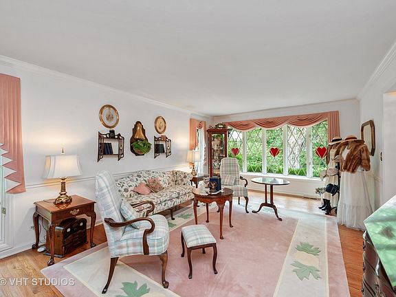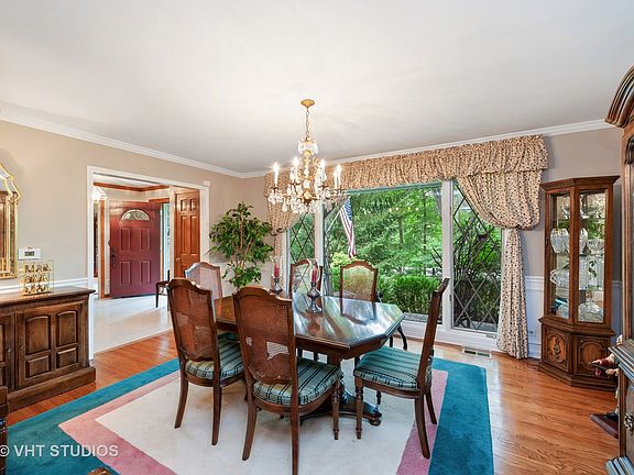 Embark on this rare opportunity to own a special gem nestled on .93 acres. A rare blend of a private setting and a meticoulous home. A brick paver walkway leads you to an inviting front porch. Grand room sizes & hardwood floors throughout. The dining room connects to the kitchen through the butler's pantry. Kitchen boast stainless steel appliances, countertop seating & an eating area. Family room features a wood beam ceiling & a stone fireplace. Basement is ready for entertaining with a built in bar & brick fireplace. Enjoy exceptional private views from your patio or gazebo of the professionally landscaped yard, flourishing gardens, lush landscaping & pond. Drive by at night to admire all the landscape lighting. New Furnaces & 2 New A/C installed in 2020. Hot Water Heater in 2019. Great location & easy access to town, train, expressway, restaurants & shopping.