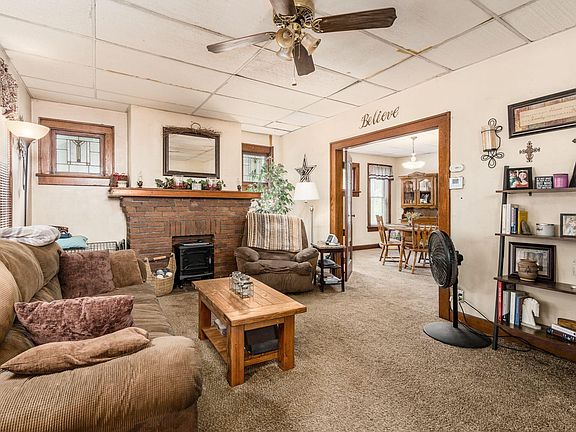 Charming home ready for new owner to love ! Original woodwork, hardwood floors,(hardwood under carper on main level), stained-glass windows, covered front and back porches, large fenced back yard with plenty of space for a garage off the current driveway or off the back alley. Brand new electric throughout home. New insulation recently blown into attic. Newer Furnace is 5 years old. Some newer windows. Selling as-is. Roof and gutters are older, new AC needed, interior needs paint. Loads of potential !! Blink security system, cameras and doorbell do not convey.