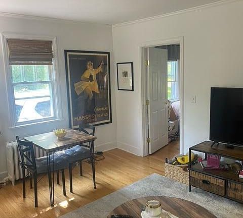Flexible space. 1st floor has living room and one bedroom (or could be used as dining room) with hardwood floors, kitchen and full bath. Lower level has bedroom ,walk in closet and full bath. Access to shared laundry room. Heat included. Includes one off street parking space.