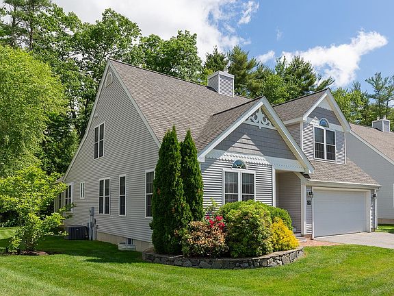 Welcome to Hampton Meadows a premier 55+ HOA community This classic contemporary condo in New Hampshire's desirable Seacoast is ready for its new owners! 2 bedrooms and 3 baths. The first floor has an open concept living and dinning room with hardwood floors, dramatic cathedral ceilings & gas fireplace. First floor Master bedroom suite with large en suite bath with walk-in closet. Kitchen is open to bright sun-room with sky lights and sliders to private deck. This flexible floor offers a second floor master suite with its own full bath and additional walk -in closets and a loft/office. Plenty of storage in the full basement with workbench & utility sink. Well maintained association which includes clubhouse, in ground pool, tennis/ pickleball courts and garden space. Close to town, beaches and commuting routes. One hour to Boston 20 minutes to Portsmouth & Exeter. Pet friendly (up to 2 household pets) OPEN HOUSE Saturday June 15th from 11-1PM