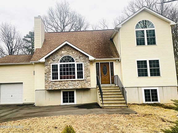 Don't miss opportunity to enjoy summer in a community in the Heart of the Poconos with great amenities including outdoor pools, tennis courts, park and 24/7 security service. This Custom Built House is located within walking distance to the pool. Open concept floor plan with Cathedral Ceiling has plenty of sun light and great views of the forest and wildlife. Enjoy wood fireplace during the winter and barbecue on the extended deck in the summer time with guests. This house offers 4 large bedrooms with hardwood flooring, 4 tiled bathrooms and separated kitchen/dining area which can easily accommodate extended family and friends. This community is located in the Tri-State area Of NY, PA and NJ stateS and is convenient to commute., Beds Description: 2+Bed1st, Beds Description: 2+BED 2nd, Beds Description: 1Bed1st, Baths: 1 Bath Level 1, Baths: 1/2 Bath Lev 1, Baths: 2 Bath Lev 1, Baths: 2 Bath Lev 2, Baths: Modern, Eating Area: Modern KT