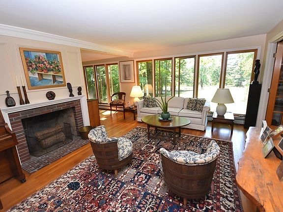 Beloved Echo Hill executive ranch with a coveted 3/4 acre setting overlooking the pond. Home was tastefully updated and is well landscaped with years of plantings and generous use of Goshen Stone. Circular drive adds elegance. Front door opens into an inviting foyer and into the spacious living room w/fireplace and wall of windows overlooking the pond. French doors open into the office with lovely built ins. Cooks kitchen with fireplace, cathedral ceilings, granite counters, ample maple cabinetry, gas stove and pantry closet. Dining room is open to the kitchen and also has a wall of windows. Adjacent is the lovely porch area with access to the deck. Primary Bedroom open has large bath with tub and tiled shower. Second bedroom, 1/2 bath and spacious laundry room w/closet allows one to live on one floor. Walk out basement is light and bright with a 3rd bedroom, family room, 3/4 bath and flex room. Perfect for visitors or help. Echo Hill living at its best. Come Preview!
