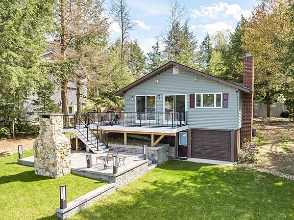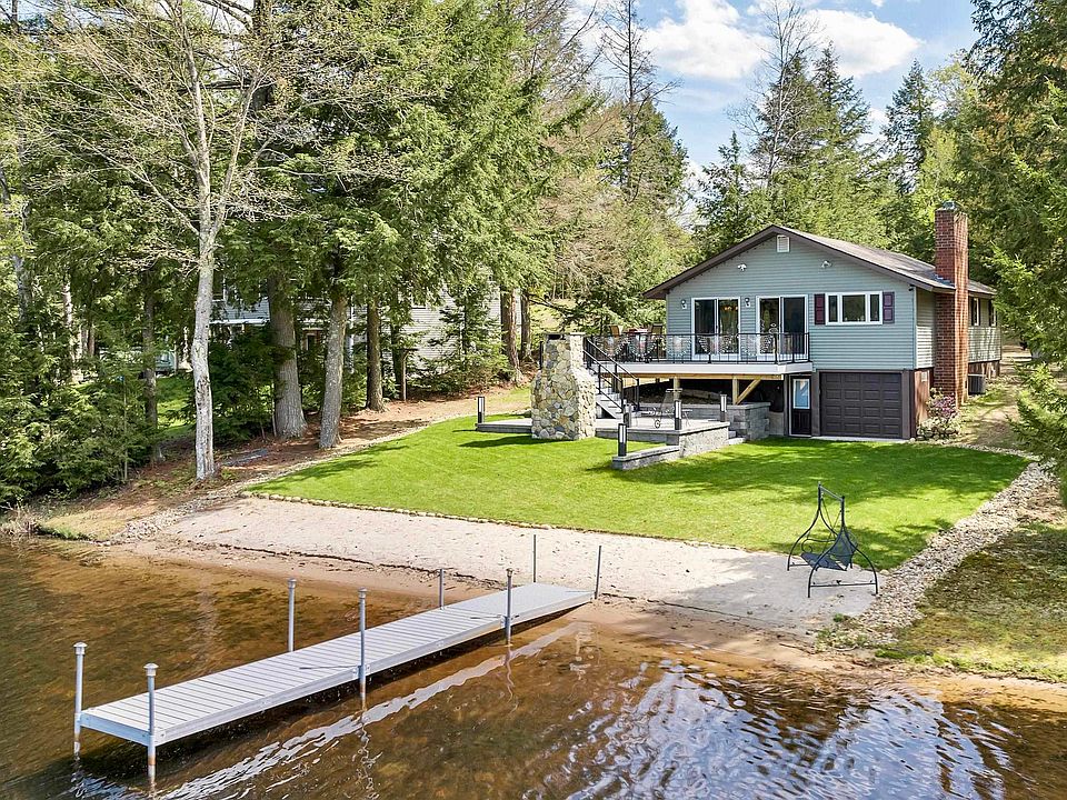 A True Lakeside Paradise! Discover this immaculate, fully renovated lakefront home situated on the serene Hermit Lake in the picturesque upper valley of Sanbornton. Boasting 102 feet of pristine lake frontage, this beautiful residence offers a sandy beach and a 30-foot dock, perfect for endless summer and winter fun and relaxation. This year-round property has undergone a complete transformation, with over $125,000 invested in outdoor enhancements including a brand-new deck, patio, and a charming stone fireplace, all designed to enhance your outdoor living experience. The expansive deck is ideal for entertaining. The open-concept layout features a cozy kitchen, dining, and living area, all with stunning lake views. The kitchen is equipped with top-quality appliances and extra-thick granite countertops. The living spaces are adorned with new paint, flooring, windows, and doors, ensuring a move-in ready condition. Both bathrooms have been elegantly remodeled with modern fixtures and finishes. The home’s exterior is equally impressive with new vinyl siding, composite decks, and durable deck rails. This property is the walkout lower level, which includes a full basement with impeccably painted floors. This versatile space offers potential for future expansion, whether you envision additional living areas or convenient storage for boats and other recreational equipment. The garage door access makes it easy to store all your toys securely. Full home generator included.