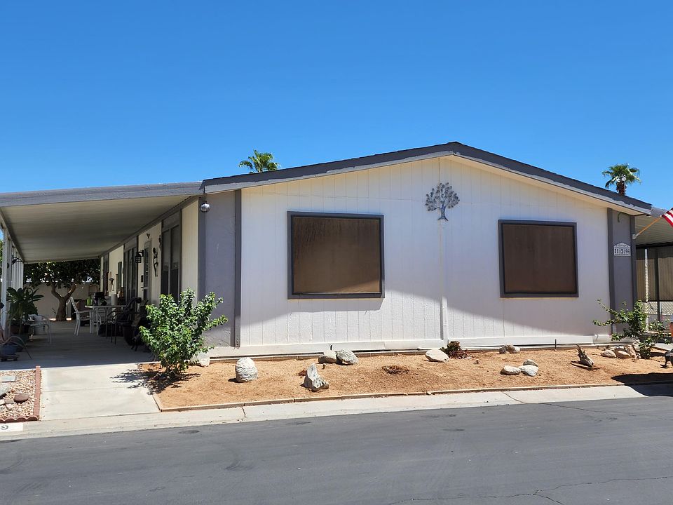 This is a 55+ community and this lovely home is in the center of the community. The rooms are large and the ceilings are high. The laminate flooring is in the hallway, living room, kitchen and dining area. Carpets are in the bedrooms. The kitchen is upgraded and very pretty. The AC is about three years old and the swamp cooler is new. Solar panels adorn the roof and the roof is about two years old. What more could you ask for? Please be aware you need to qualify to live in this community. You must show the management six months of bank statements proving you deposit at least $2700 per month. Also you need a high FICO score of at least 740. And one dog under 20 pounds.