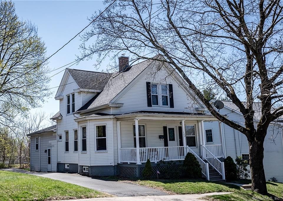 This lovely home is much larger than you would imagine. There's a charming living room that is open to formal dining room. The living room could also be a home office. Off of the dining room is the kitchen, which has plenty of cabinet and counter space, plus a pass-through to the family room. The family room has a small dining area next to the kitchen for your morning coffee. This room is very spacious and even has windows overlooking the west side of Wallingford, offering sunset views. The large primary bedroom has two double closets. There's a remodeled full bath next to this bedroom. Laundry is conveniently located next to the bath on the main level. Living room and dining room have hardwood under carpet. The first floor also offers cooling through a newer mini-split a/c system (3 units on 1st floor). Upstairs you will find four additional bedrooms and a full bath. Other updates to the home include newer roof, Anderson windows in family room, insulation and a water mitigation system in the basement. T Great location - close to downtown area for dining, shopping and local activities. It's also close to Choate Rosemary Hall Private Boarding and Day School. Home sold in as is condition.