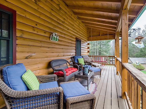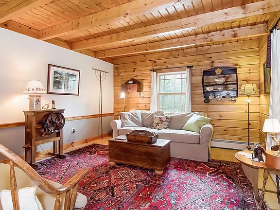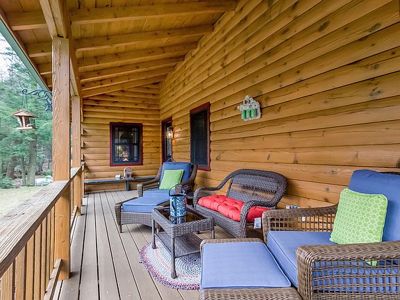 Fabulous, meticulously kept log home located on a private 4.5 acre lot. It is ready to move in & enjoy warmer days on the front porch. The first floor features hardwood flooring, a large living room with fireplace, dining room and first floor bedroom or large den plus a remodeled full bath. The kitchen has been updated with custom cherry cabinetry, granite and stainless appliances. The second floor has a very large master bedroom with sitting area and updated bathroom. There is another large bedroom on this level with its own private bath. The lower level has an office/bedroom with an updated half bath. The windows were replaced 6 yrs ago with Marvin windows and the furnace was recently replaced. The exterior has a newer deck and patio and a 12x20 barn plus a separate shed. Enjoy just a few minutes ride to shopping, entertainment & recreational areas.