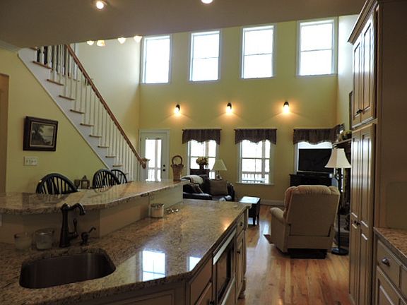 114 feet of shoreline. There is water under the dock year round. Drive your ATV down the concrete drive to the water's edge! Convenient to downtown Wedowee! This lake home has 3BR/2BA with a loft area. Master suite on the main level. Beautiful rock faced wood burning fireplace is a focal point in living area with vaulted ceilings. The custom kitchen has stainless appliances, double farm house sink, gas stove, and granite counters. Hardwood floors on main level and loft. Full unfinished basement with partially finished bath. Covered front porch and back to enjoy rocking chair evenings or views of the lake! Covered floating dock. Concrete driveway. Paved roads.Directions: Take Old 431 out of Wedowee, turn left at Bent River, turn left at stop sign on Northpoint Drive, turn right on Hillcrest Court, house is on the left.