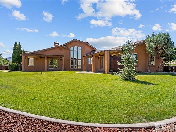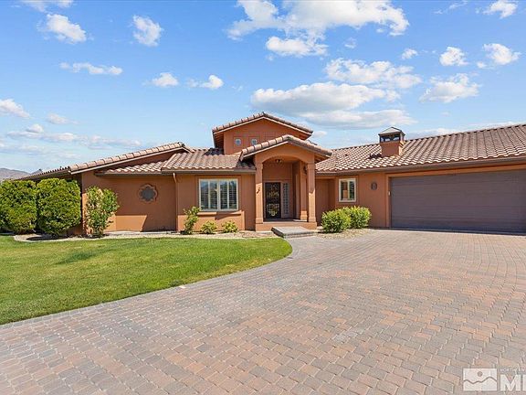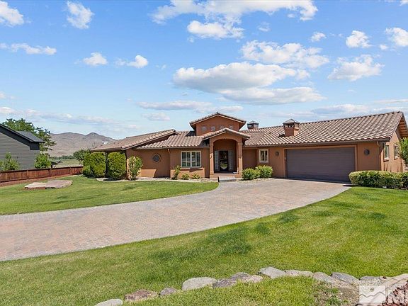 Move-in ready, dream home for sale. Our 2,704 sq/ft single-story luxury home offers unobstructed views of Quilici Ranch and the Virginia and Pine Nut Mountain Ranges. Low maintenance and high style stucco exterior 2" X 6" walls, clay tile roof and metal accents and gutters. With its two-story window-wall living room, 3 bedrooms, 2.5 baths and 4-car garage, this is an incredible opportunity you won't want to miss! 129 Hillcrest Circle in the beautiful and historic Dayton Valley in $0 state-income-tax Nevada!, This gorgeous luxury property takes the traditional ranch-style floor plan and twists it this and that way, off axis, to maximize views and privacy while shielding from the powerful Nevada sunshine. Inside find a cathedral-like two-story window-wall living room, 3 bedrooms, 2.5 baths and 4-car garage. 129 Hillcrest Circle, now listed at $699,000 from the original price of $840,000. Don't wait! Contact us today to schedule a showing and make this beautiful home yours.