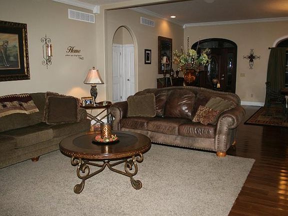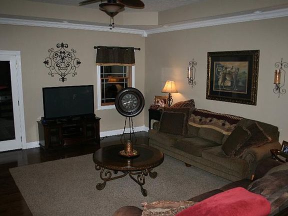 The living is easy in this airy, open-plan ranch style home situated on 2.48 acres. Built for the rough & tumble of family living while maintaining just the right amount of sophistication.The main floor features 10 ft ceiling height, hardwood and tile flooring, large open dining area, great room, stylish & efficient kitchen complete with hickory cabinets, granite counter tops & breakfast bar, 2 1/2 baths, 3 spacious bedrooms, including a generously sized master with luxurious ensuite, tile shower, jetted tub, double vanity, great storage & walk-in closet. Lower level is home to a 4th bedroom and bath with walk-in tile shower, laundry room and ample space perfect for an array of purposes, currently serving as a game room and 2nd living room. Outside features a covered deck perfect for casual entertaining. Located in beautiful Lee Oak Estates with every convenience just minutes away. Call today for your private tour.