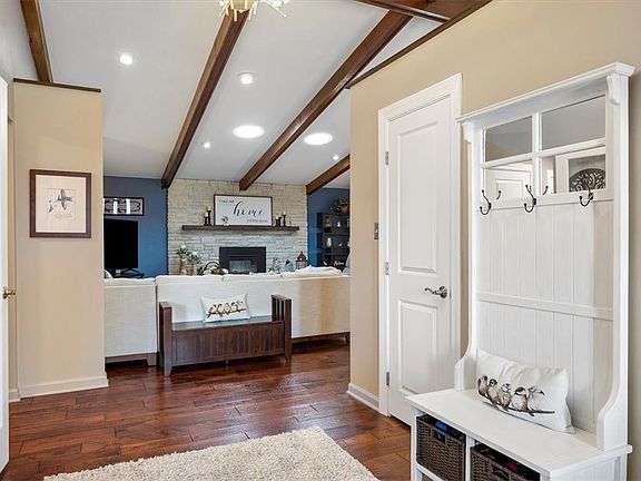 Welcome home to this beautiful brick rancher in Allison Plan! The foyer welcomes you in where you're immediately greeted by gleaming hardwood floors and vaulted ceilings with gorgeous exposed wooden beams. A living room with glass French doors, making a perfect home office or playroom, is off the entry. The family room with a stone fireplace opens up into the formal dining room. An updated eat-in kitchen boasts a center island, stainless steel appliances and a breakfast nook. Off the kitchen is the laundry room and one bedroom. The primary bedroom has an updated ensuite with a dual vanity and walk-in shower. Two more bedrooms and another updated full bathroom finish the main level. The lower level has a large recreation room complete with a wet bar and half bathroom. A covered patio leading to a second driveway for extra parking awaits you outside along with an inground pool, hot tub, and large deck making it ideal to entertain. Close to the casino, outlets, and plenty of restaurants!