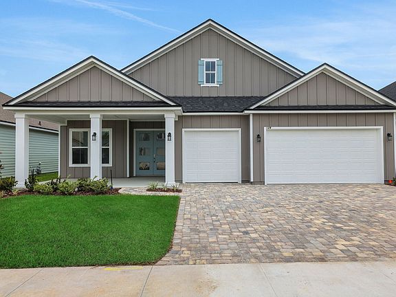 Welcome to the stunning Boca home plan - where style and functionality come together beautifully. A grand double-door entry opens to a spacious foyer, perfect for welcoming friends and family. Just off the entryway, you'll find a versatile home office or formal living area, offering flexibility to suit your lifestyle. Beyond the foyer, the open-concept design seamlessly connects the elegant dining room, expansive great room, and a chef-inspired kitchen featuring a large island, gas cooktop, white cabinetry, tile backsplash, stainless steel appliances, and an impressive walk-in pantry. The owner's retreat is a true sanctuary, showcasing an oversized bedroom with a charming bay window - perfect for enjoying your morning coffee - along with double vanity sinks, a relaxing soaking tub, a step-in shower, and a spacious walk-in closet. Two additional bedrooms and a flex room provide ample space for family, guests, or hobbies. Step outside to your private lanai and enjoy peaceful evenings in style. Additional highlights include a three-car garage, paver driveway, and coach lights for enhanced curb appeal.