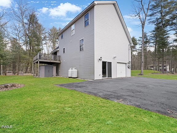 WELCOME HOME to your 3 bedroom, 3 bathroom house located in the desirable Pocono Mt Woodland Lakes! This convenient location is a commuter's dream being minutes from the entrance to Route 84 and downtown Milford for all of your entertainment. A paved driveway leads you to almost 2,700 square feet of living space, perfectly positioned at the rear of a level and landscaped 1.04-acre lot. Upon entering through the lower level, you'll quickly realize that this home offers it all. The ground level has an attached one-car garage, living room, bonus room with fireplace, and a full bathroom complete with a jacuzzi tub. As you head upstairs, you are immediately captured by the vaulted ceilings and stone-faced fireplace in the great room. Enjoy your coffee in the eat-in kitchen, or stroll outside in the warmer months to the attached second-level deck that leads down to your privately fenced portion of the yard. A formal dining room, two bedrooms, and a full bathroom show that this home has space for the whole family! The top level of this home offers a generously sized master suite, complete with his and hers walk-in closets and a full bathroom with a walk-in shower. Finally, there is a sitting room outside of the master suite that would make a great home office overlooking the fireplace in your great room. Don't miss out on this very large home located in the desirable Delaware Valley School District within walking distance to the school bus stop!!! PLUS A FREE 1 YEAR HOME WARRANTY COMES WITH THIS BEAUTIFUL HOME! OPEN HOUSE SUNDAY, 3/3 11-2PM