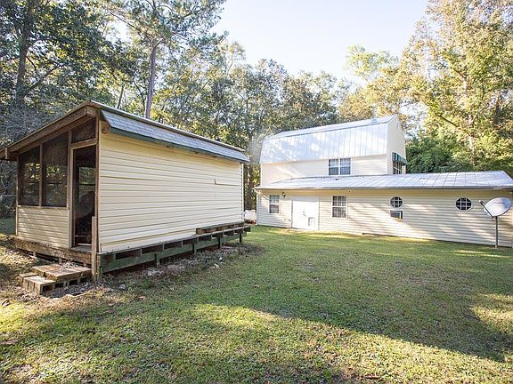 Gambrel Style Multi Level Home Boasts over 3000 square ft of living space plus 6.61 Acres! Second story has loft bedroom or office, large living/kitchenette plus bath with nice deck that allows separate entry. Downstairs has very large living area, two bedrooms, full bath with claw foot tub plus a handicapped walk in tub. Inside workshop/studio or hobby room. Unique home with lots of options! Yard is fenced around the house. Convenient to Tallahassee . New roof 2022, new HVAC 2019, 2 new water heaters 2023.